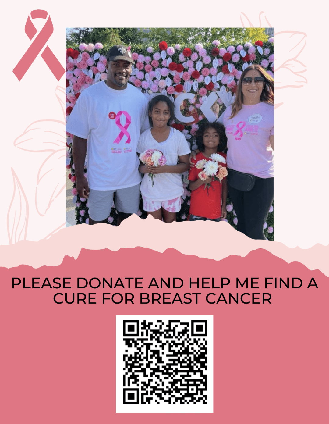I will be walking with my family and friends to support all of the fighters, warriors, and for those we have lost to breast cancer. As you know – I was diagnosed with breast cancer at age 42 and I pray for a future where no other person has to endure what I have.